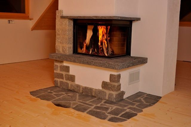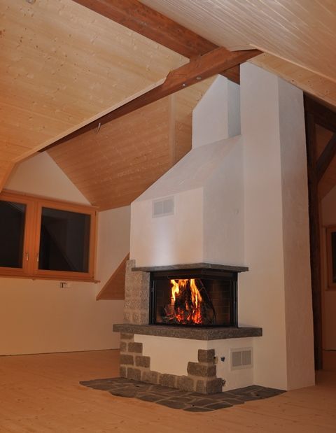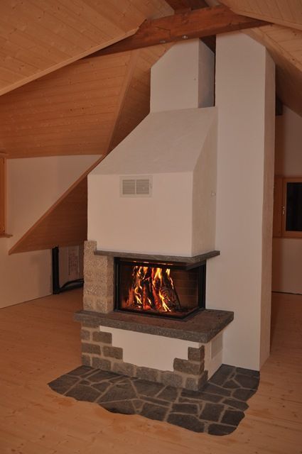 Beim Cheminée steht der optische Feuergenuss im Vordergrund. Die Wärme wird dem Raum über die verhältnissmässig grosse Sichtscheibe rasch zugeführt. Je nach Erfordernis und Kundenwunsch erwärmt sich der äussere Cheminéekörper auch für ein paar Stunden.