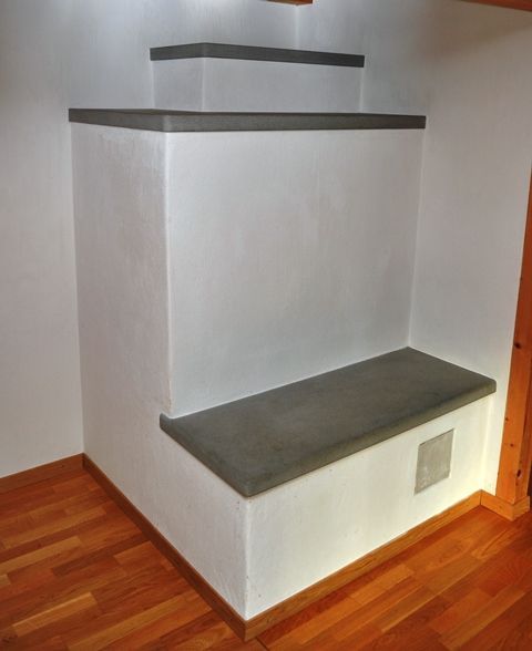 angenehme, langwellige Wärmestrahlung über Stunden wieder an den Raum abgegeben. Die äussere Gestaltung kann verputzt, gekachelt oder auch mit tauglichen Natursteinen ausgeführt werden,ebenso sind etliche Kompaktspeicheröfen mit Oberflächen aus Wärmebeton erhältlich.